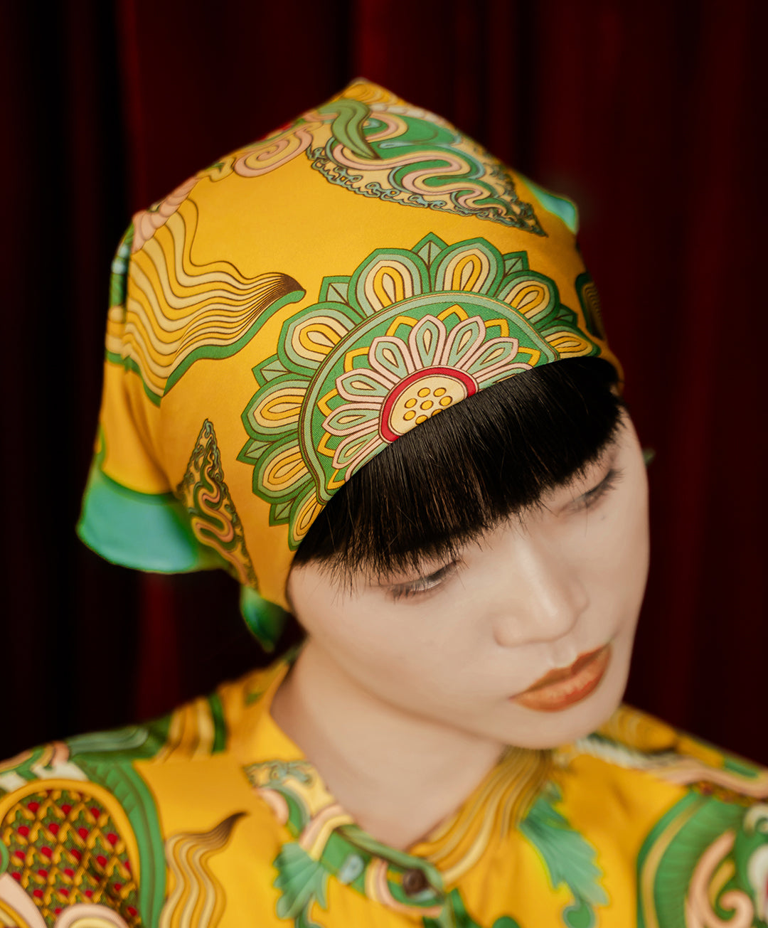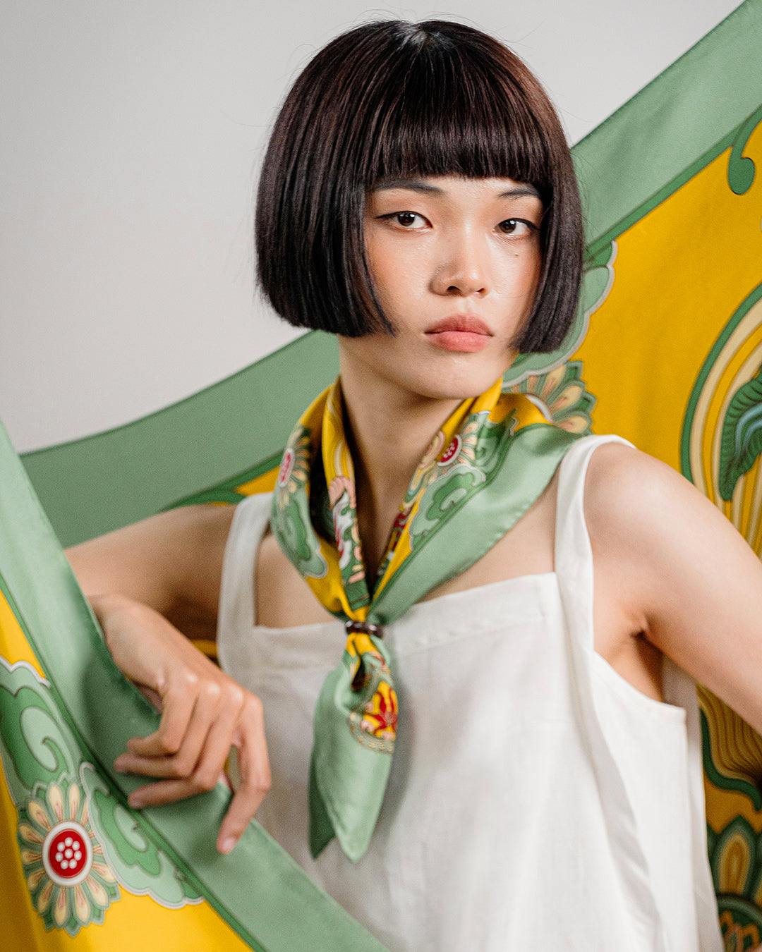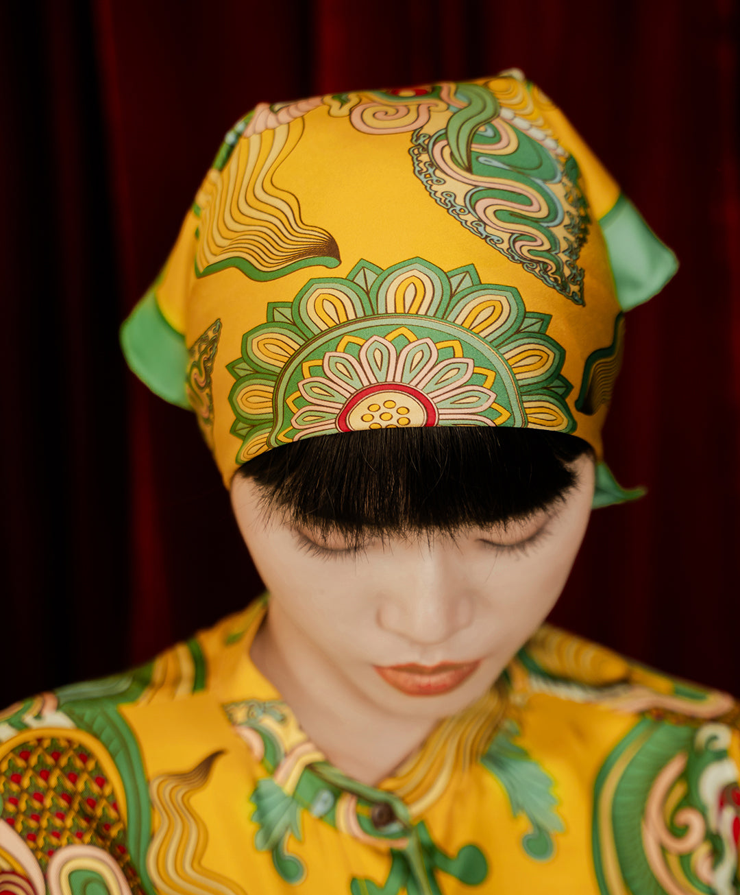 Inspired by thousand-year history of Thăng Long Citadel, "Dragon Dreams" is recreated from the original artifacts such as dragon of Ly Dynasty, the curved rooflines with Xi Van - the Roof guardian of imperial architecture, Bodhi leaves from the flourishing Buddhist era and the iconic lotus pedestal of the 11th-14th centuries… recreating a mystical realm between reality and dream, past and present, where sacred dragons unite on the scarves of our time.