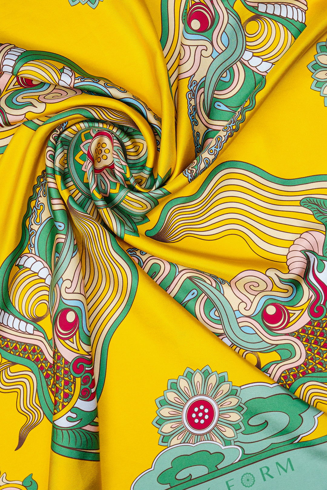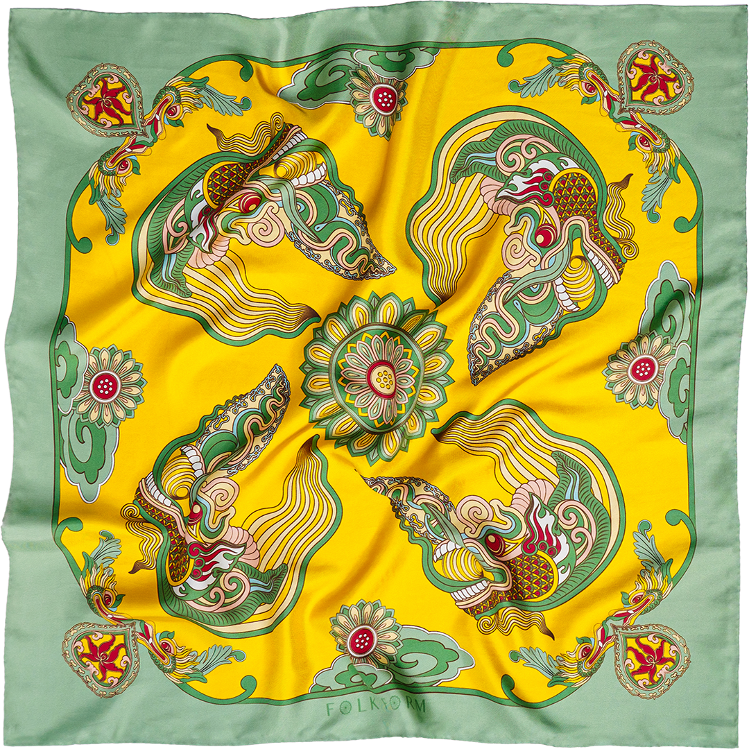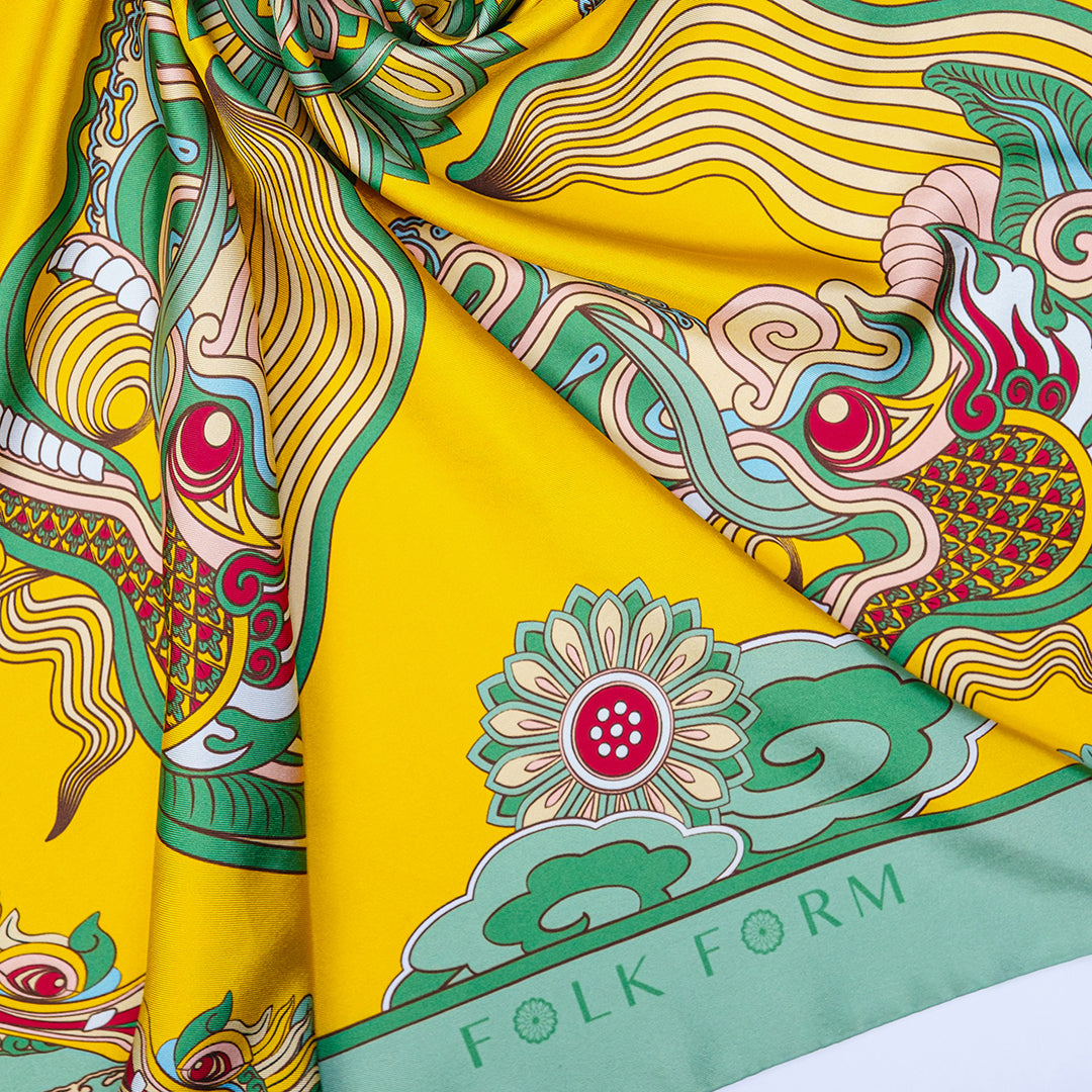 Dragon Dreams Silk Scarf / Green & Yellow / 65x65cm / 26x26in