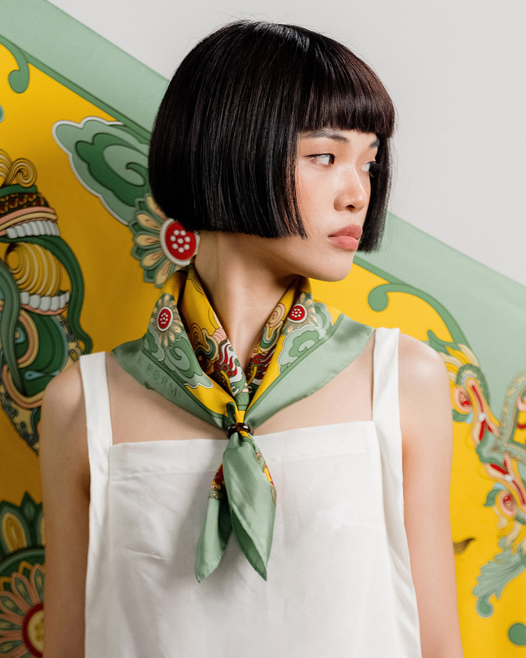 Folk Form proudly presents the silk scarf with "Dragon Dreams" print – the first piece from "Ly Dynasty - The Chronicles" collection. More than just a fashion accessory, it embodies the essence of Vietnamese heritage. Each silk thread weaves a millennia-old story, reflecting the brand’s dedication and craftsmanship. A precious gem symbolizing an ancient culture, where tradition and modern creativity converge to create a refined and meaningful beauty.