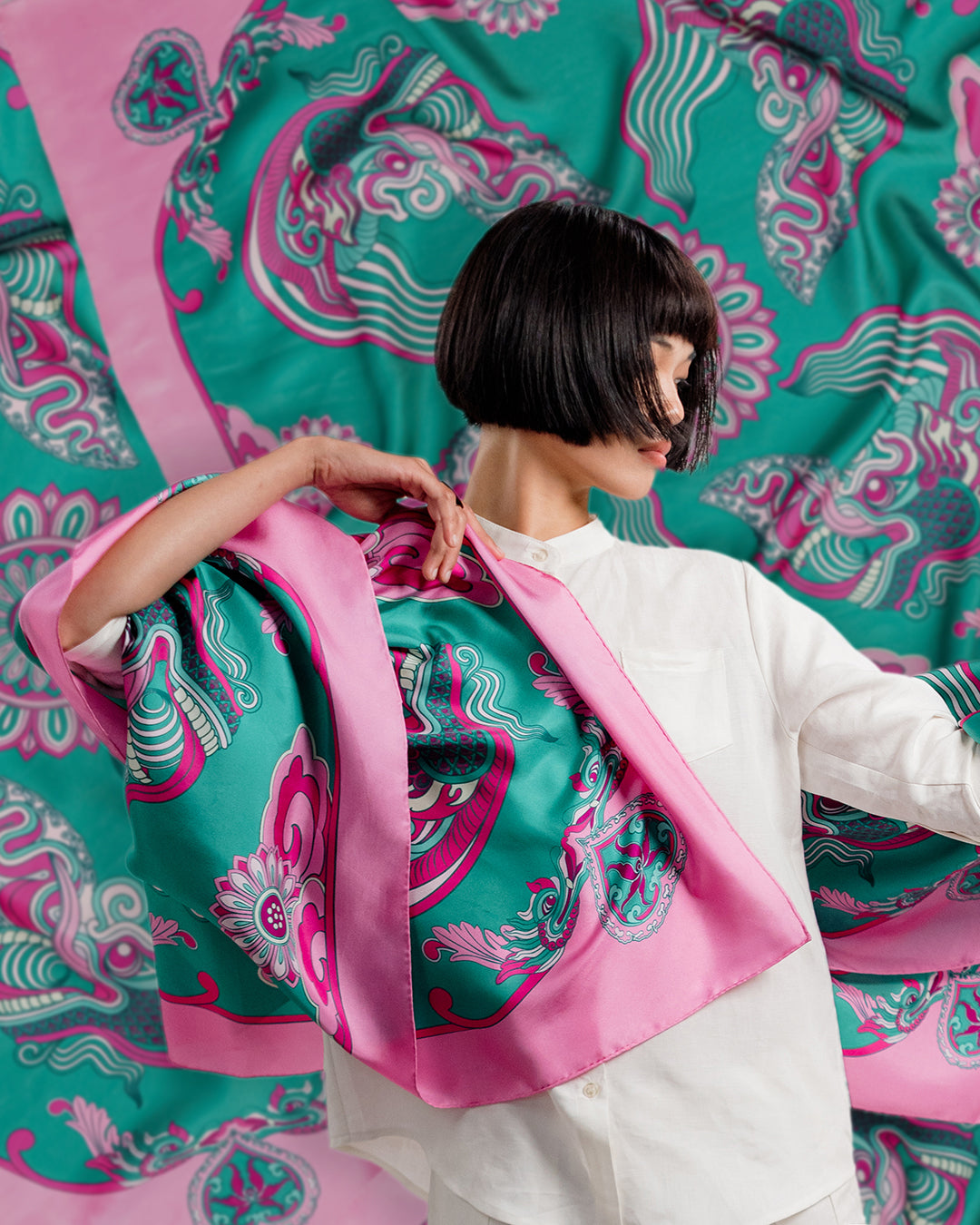 Folk Form proudly presents the silk scarf with "Dragon Dreams" print – the first piece from "Ly Dynasty - The Chronicles" collection. More than just a fashion accessory, it embodies the essence of Vietnamese heritage. Each silk thread weaves a millennia-old story, reflecting the brand’s dedication and craftsmanship. A precious gem symbolizing an ancient culture, where tradition and modern creativity converge to create a refined and meaningful beauty.