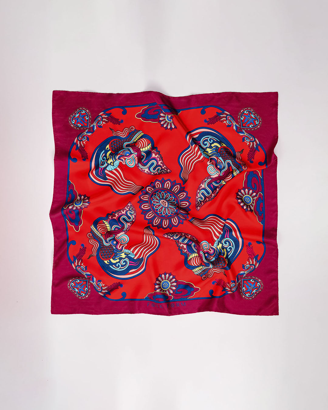 Dragon Dreams Silk Scarf / Red / 55x55cm / 22x22in