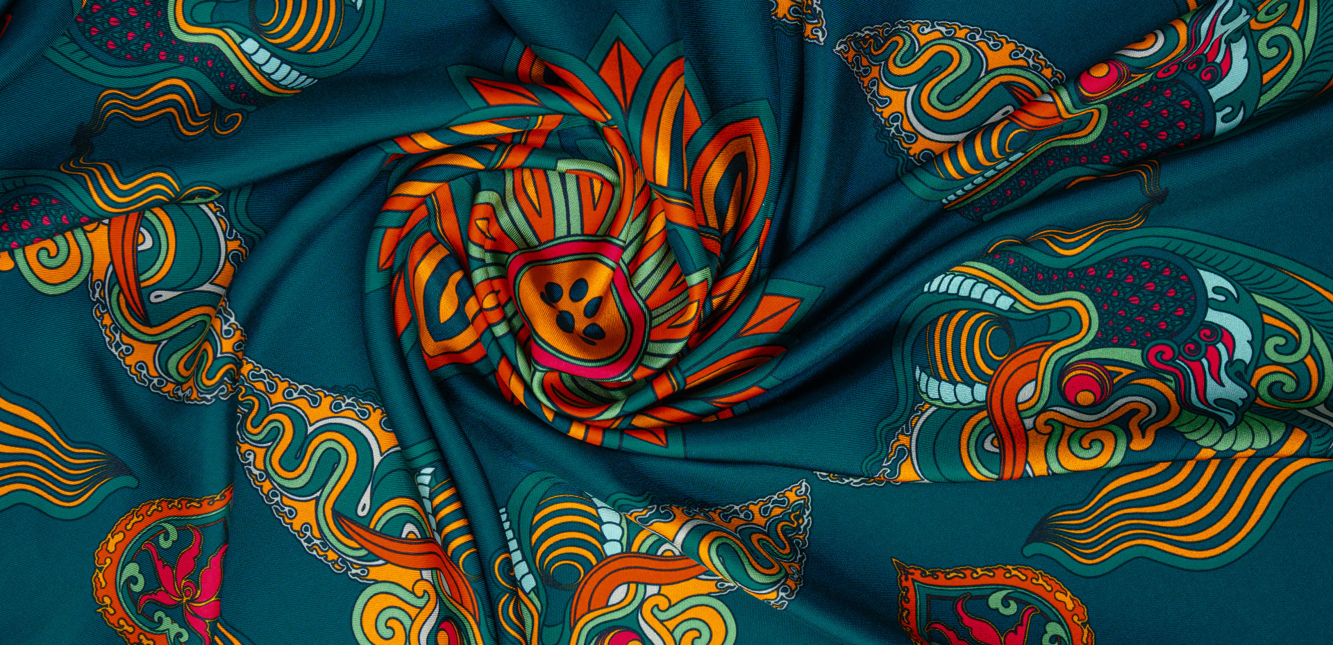 Compared to hand-drawn designs and other printing technologies, digitally designed patterns ensure sharp details and intricate elements. When combined with handmade screen printing, the final product features clear details, vibrant colors, and uniform quality on both sides of the fabric— a level of precision that most other printing methods cannot achieve.