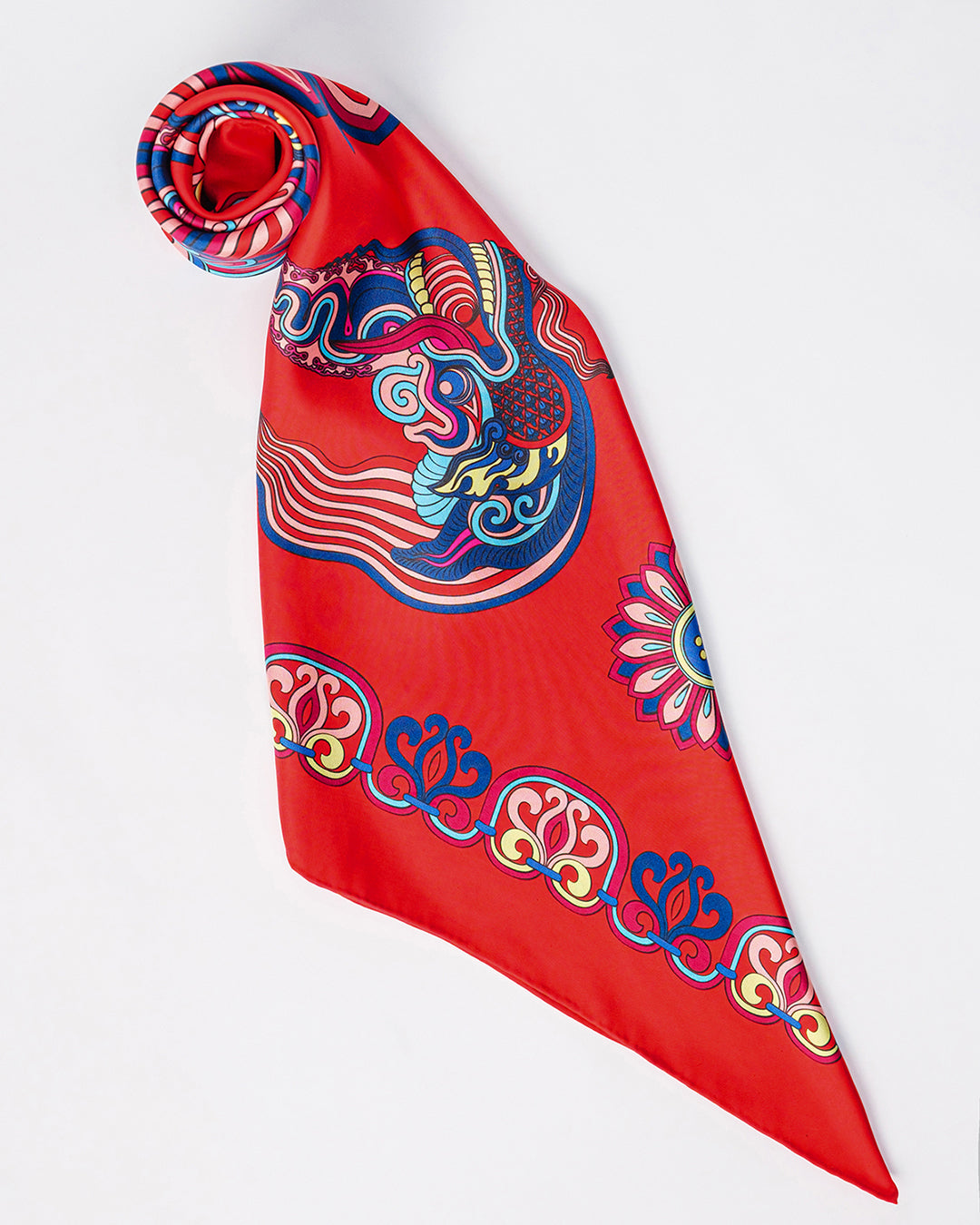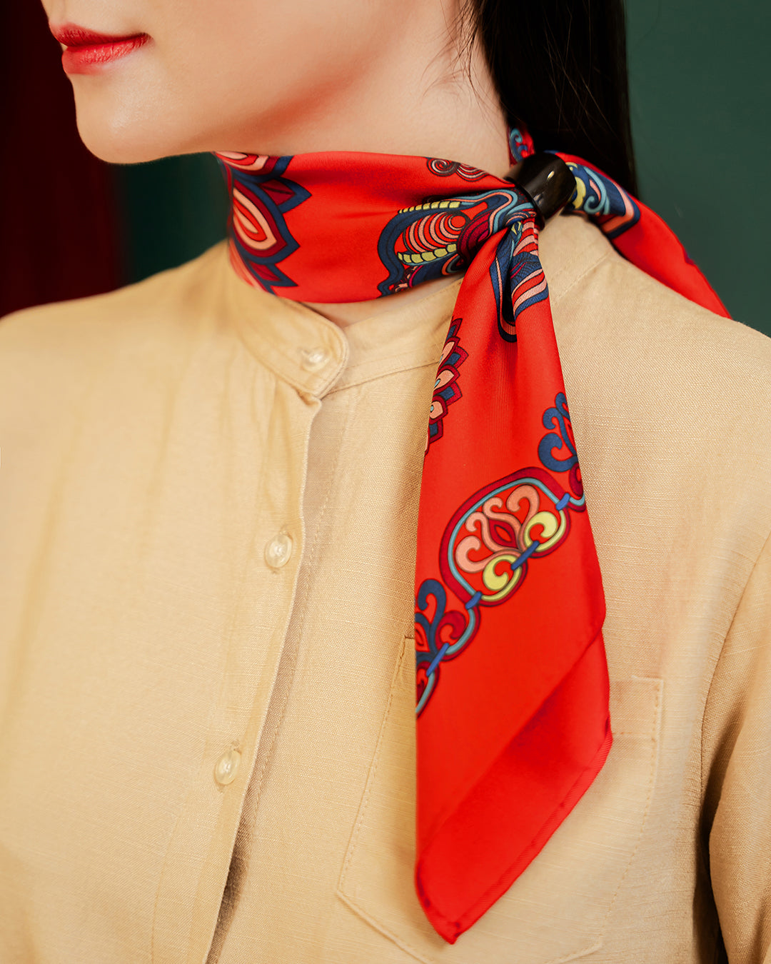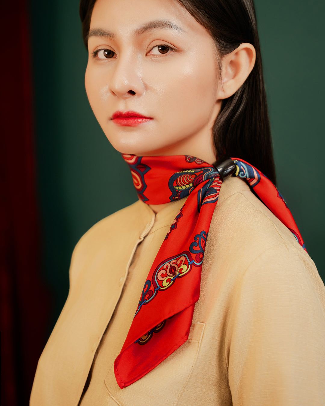Folk Form proudly presents the silk scarf featuring the "Dragon of Grace" print—a design from the Lý Dynasty - The Chronicles collection. More than just a fashion accessory, it is a symbol of Vietnam’s cultural essence. Each silk thread weaves a thousand-year story, embodying the brand’s dedication, crafting a precious gem that represents an enduring heritage—where tradition and modern creativity intertwine, bringing forth a graceful, meaningful beauty.