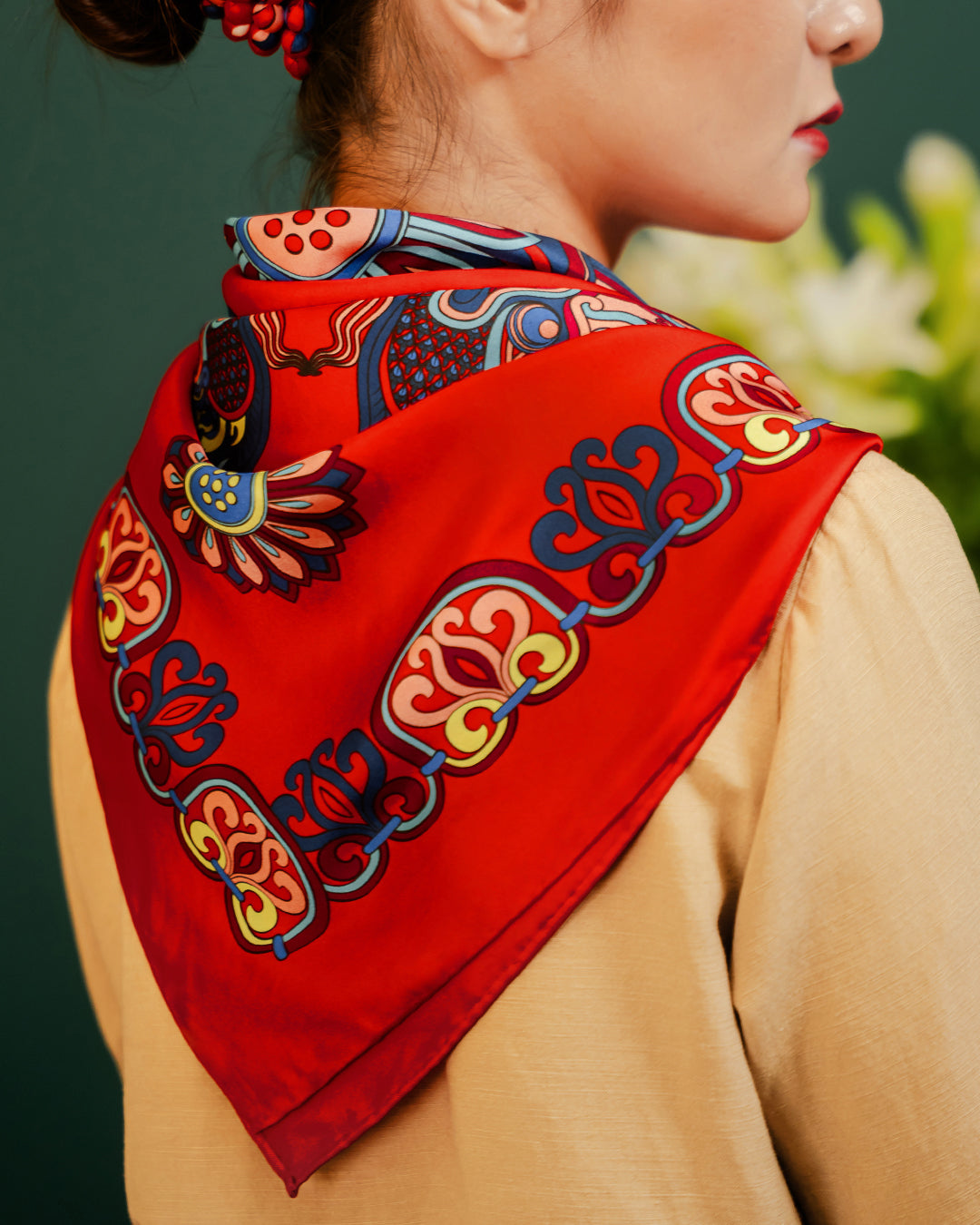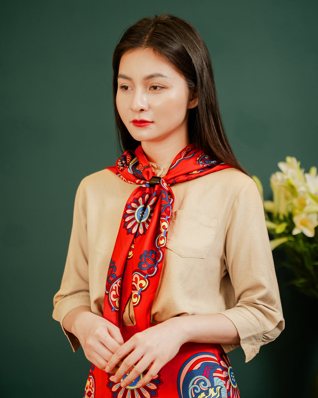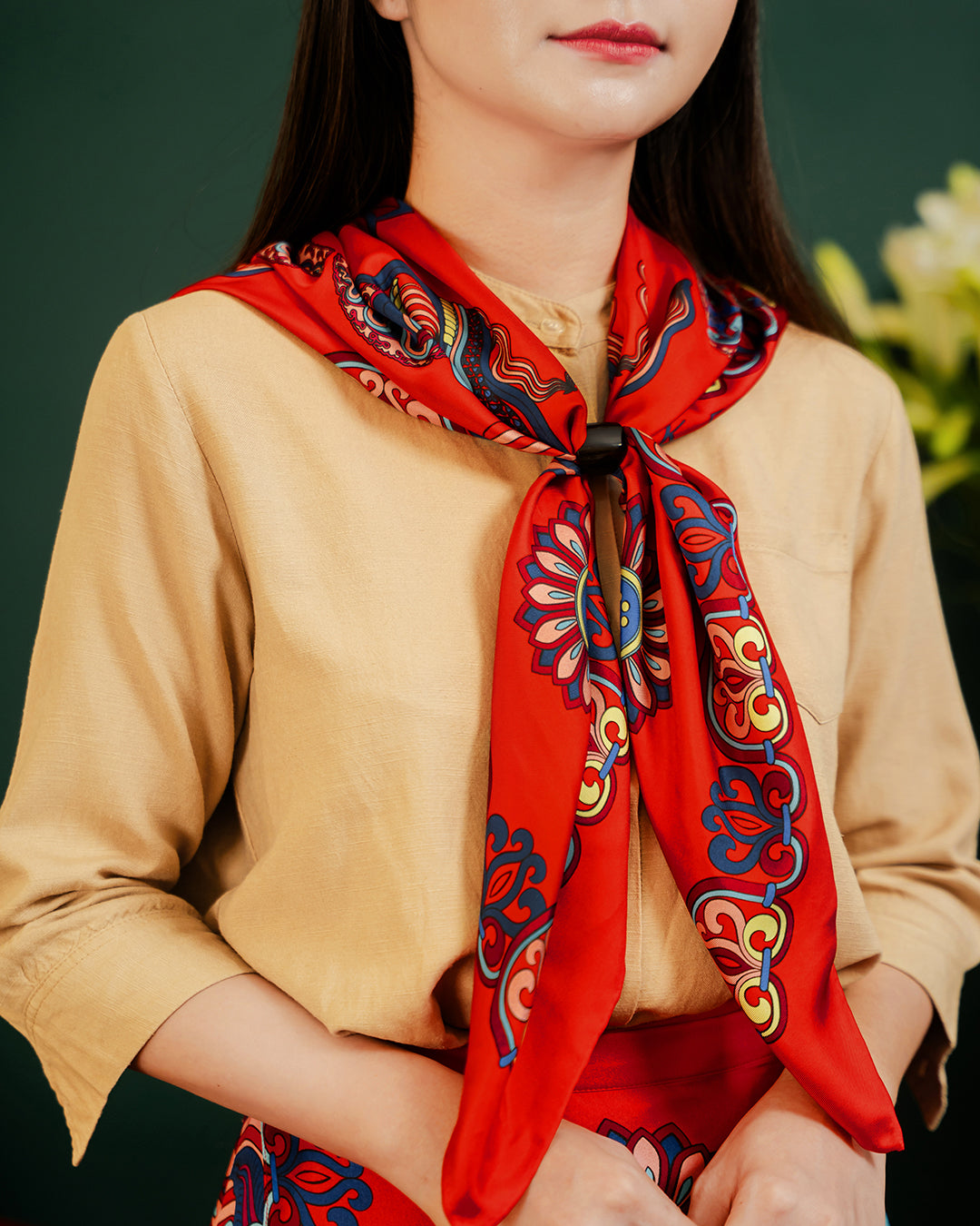 Folk Form proudly presents the silk scarf featuring the "Dragon of Grace" print—a design from the Lý Dynasty - The Chronicles collection. More than just a fashion accessory, it is a symbol of Vietnam’s cultural essence. Each silk thread weaves a thousand-year story, embodying the brand’s dedication, crafting a precious gem that represents an enduring heritage—where tradition and modern creativity intertwine, bringing forth a graceful, meaningful beauty.