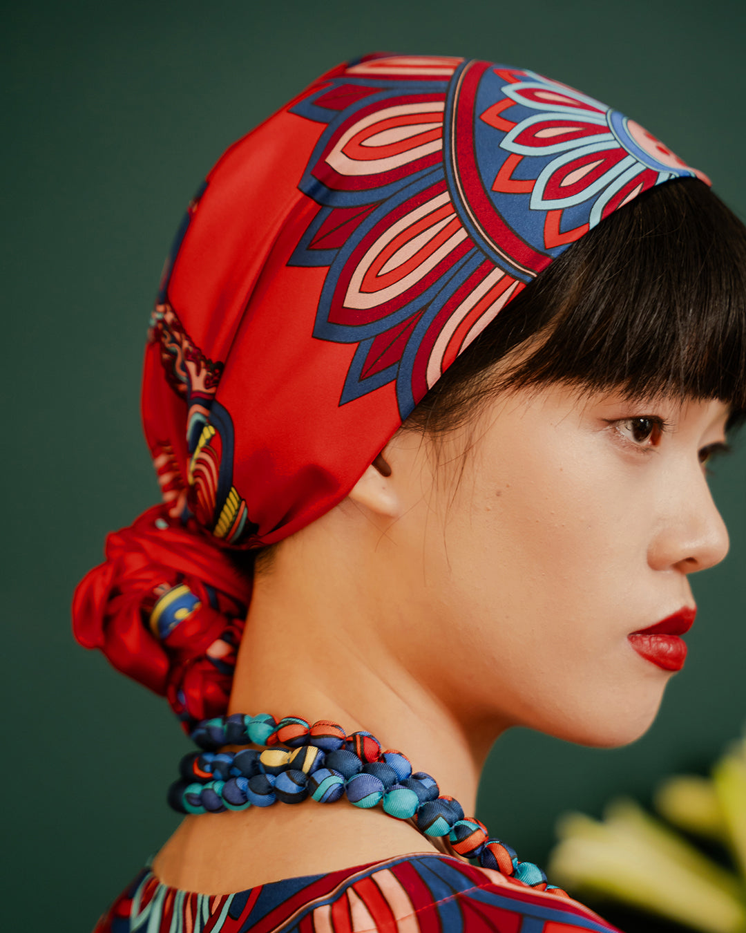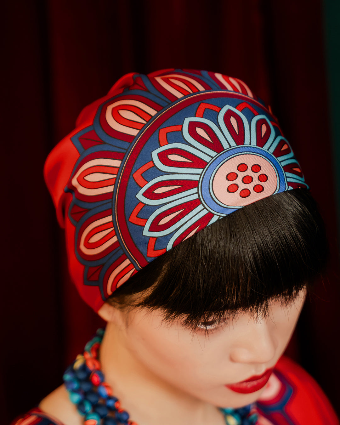 Folk Form's red silk scarf adds a touch of luxury and offers natural moisture retention, breathability, and gentle softness. Perfect for sensitive skin, it reduces friction, hair breakage, and frizz, enhancing shine. Style it any way you want in your own mood and creativity!