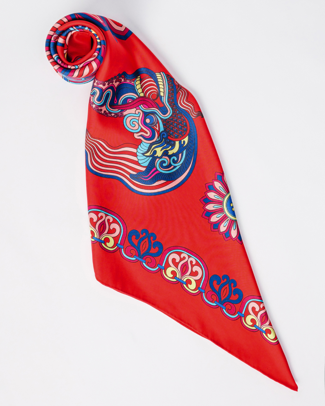 Inspired by Vietnamese royal heritage (Asian culture), the "Dragon Of Grace" Silk Scarf features a dragon—a timeless symbol of strength, wisdom, and good fortune.