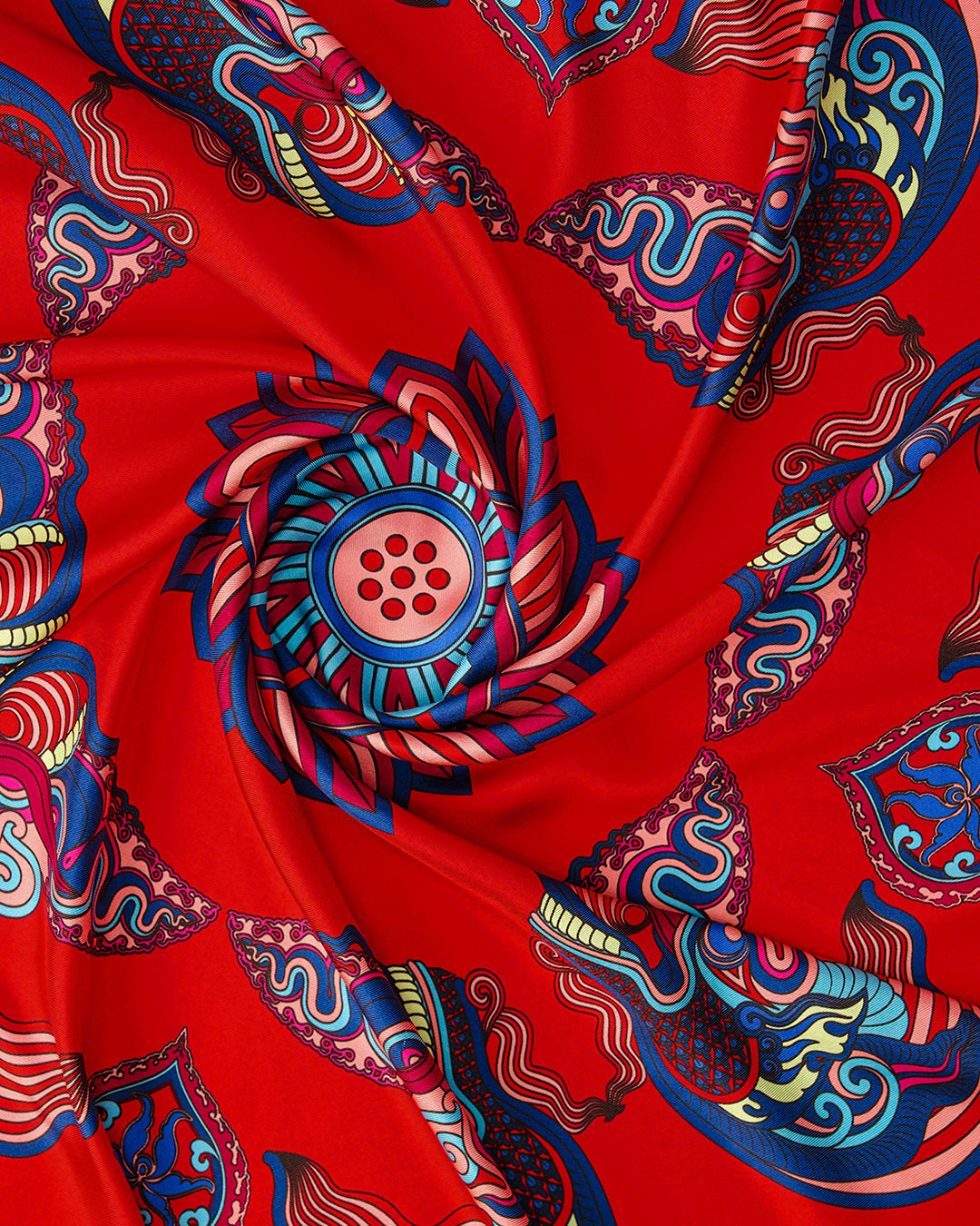 Dragon Of Grace Silk Scarf / Red / 90x90cm / 36x36in