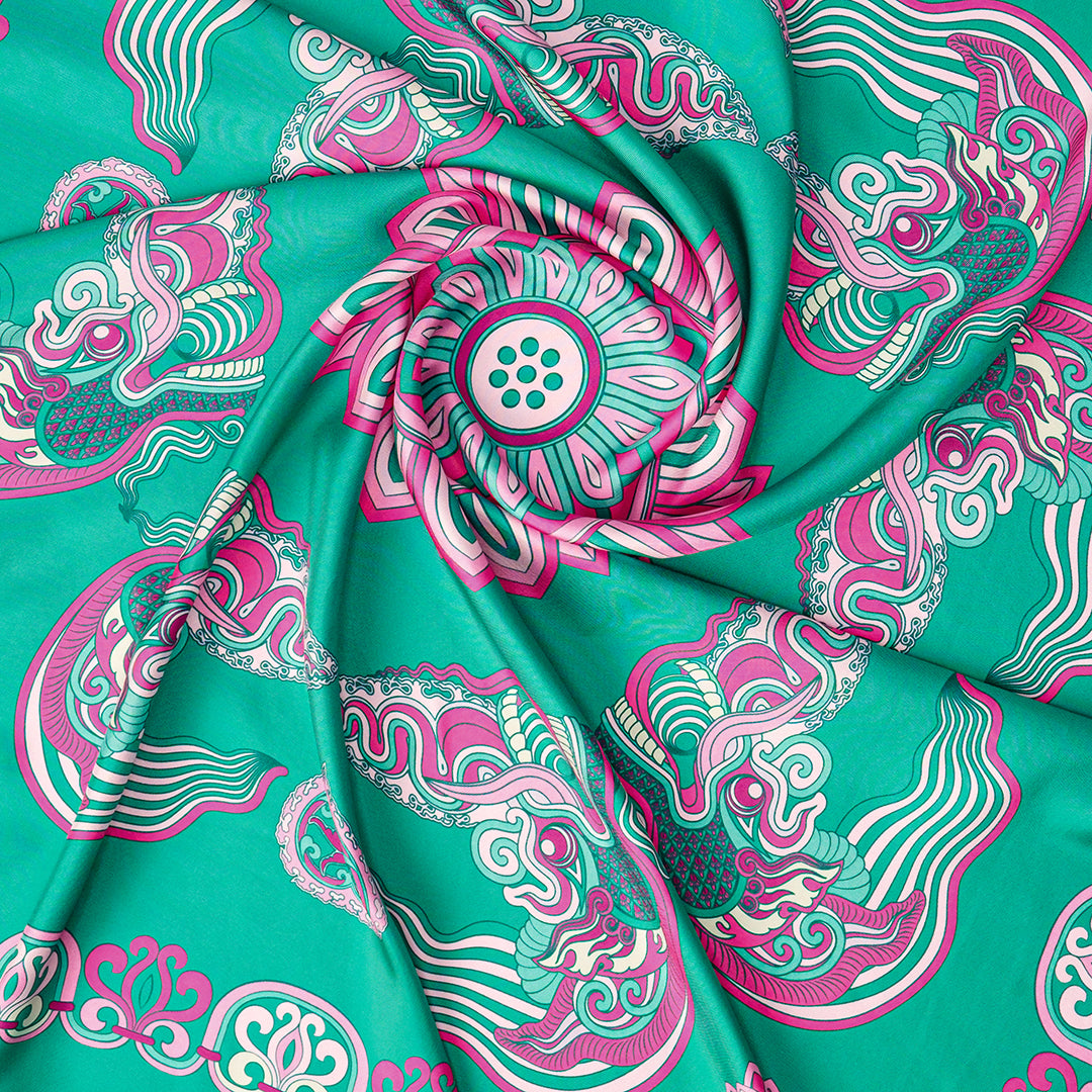 Dragon Of Grace Silk Scarf / Turquoise / 90x90cm / 36x36in