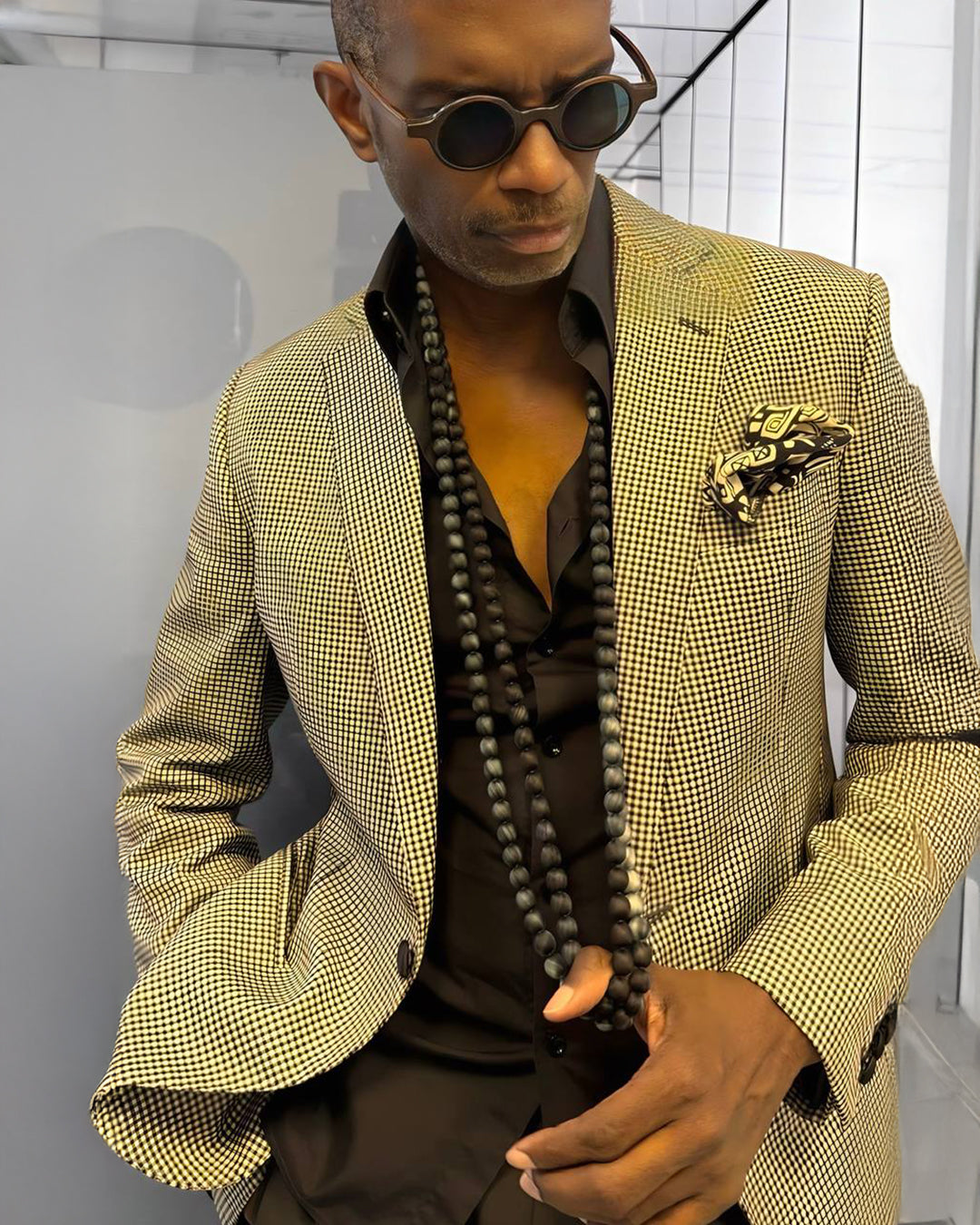 With its generous length and lightweight nature, the 220cm silk-wrapped wooden bead necklace offers various styling options: