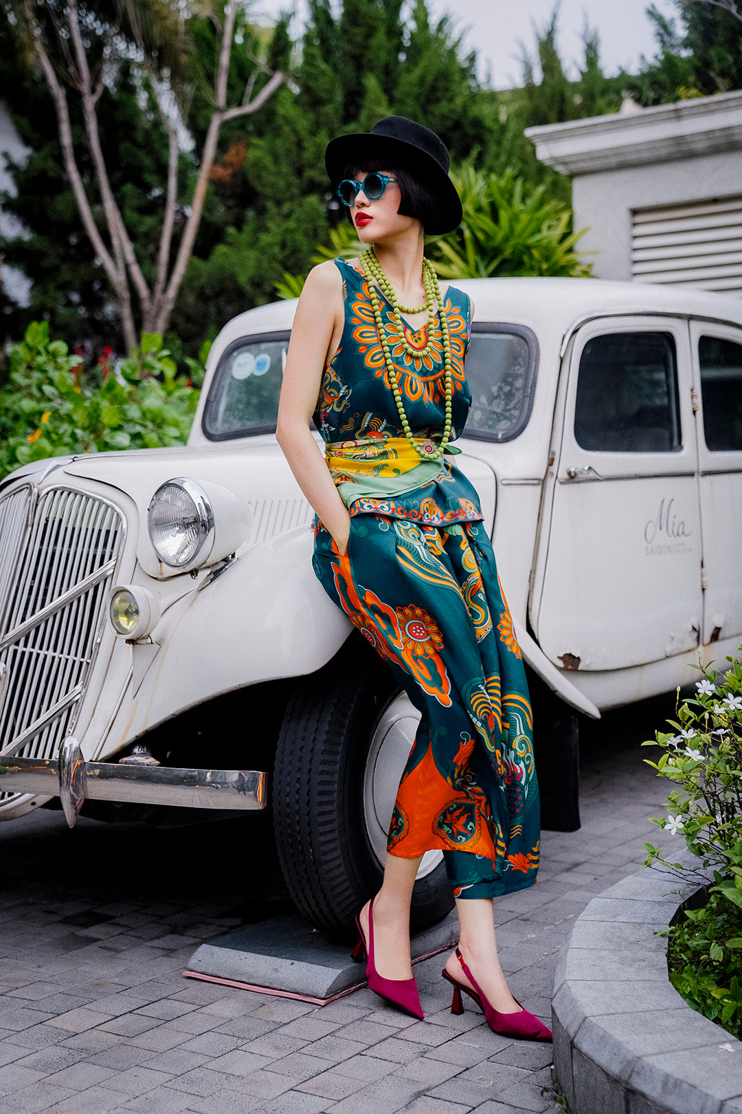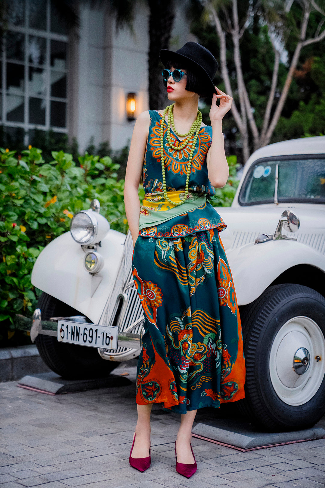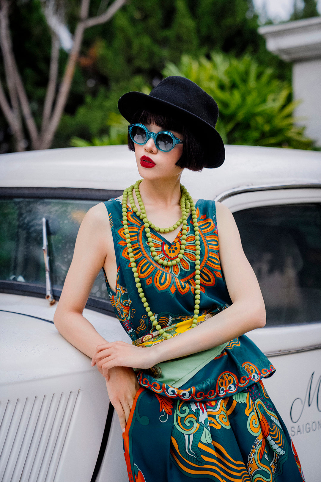 With its generous length and lightweight nature, the 220cm silk-wrapped wooden bead necklace offers various styling options: