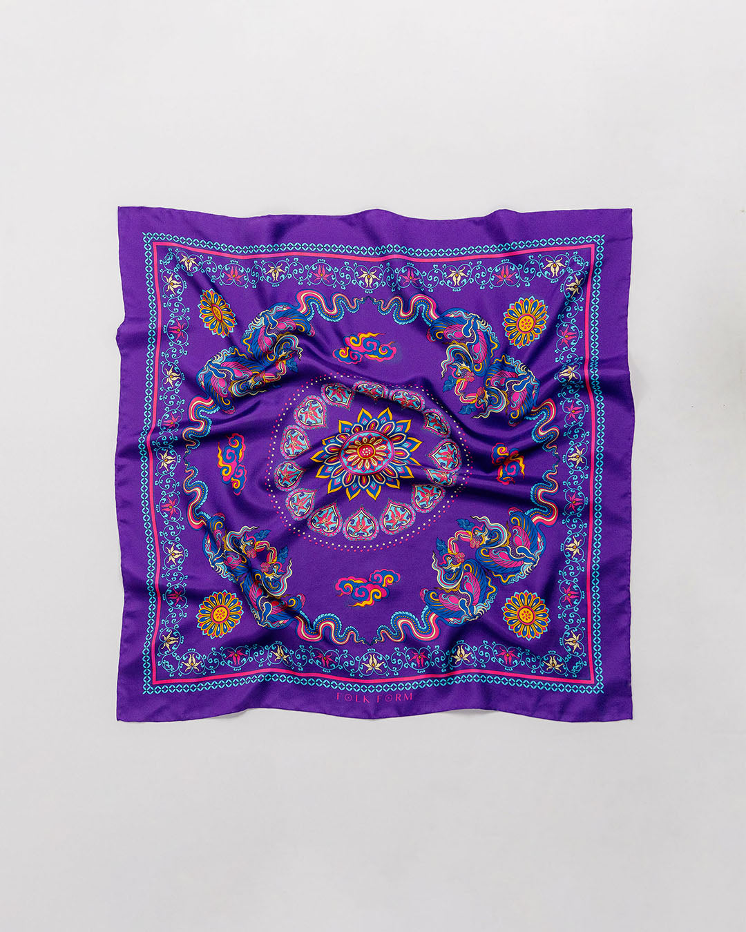 Phoenix Dance Silk Scarf / Purple / 110x110cm / 44x44in