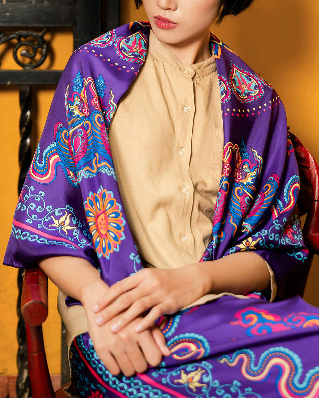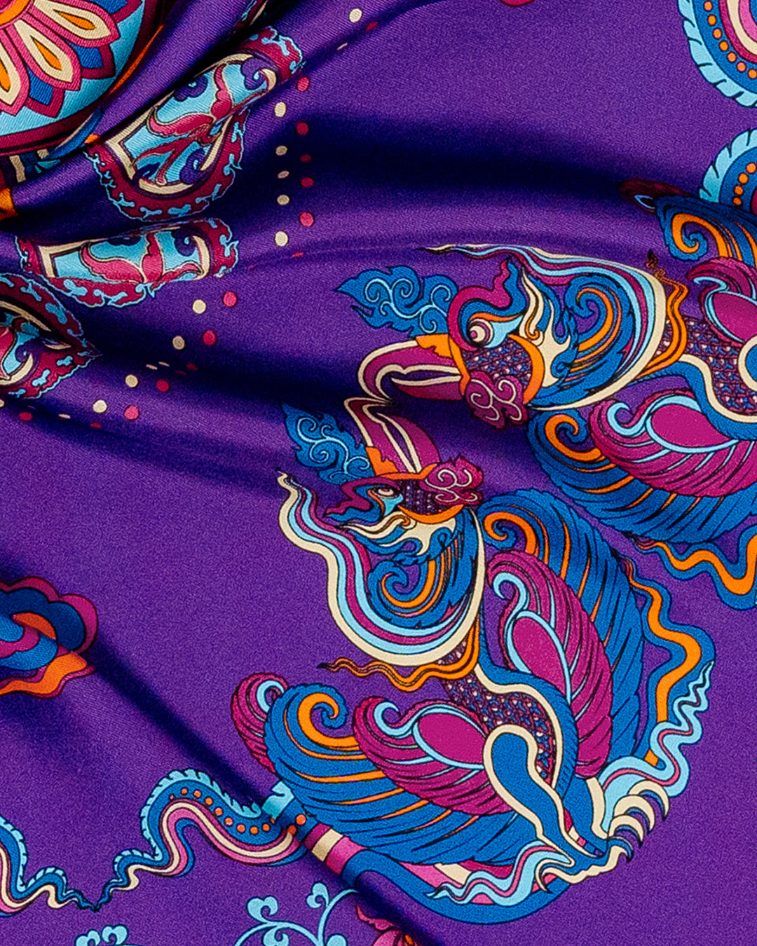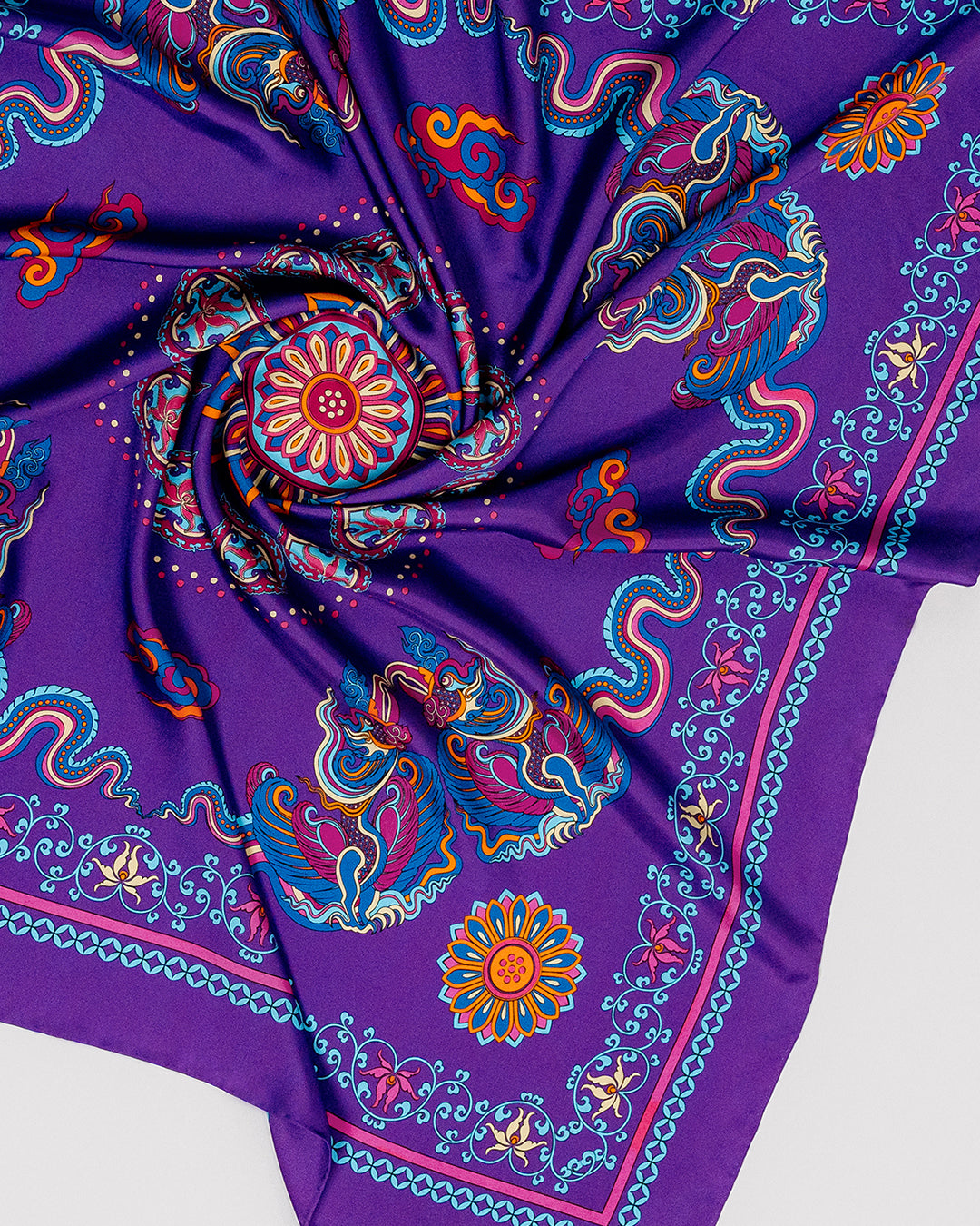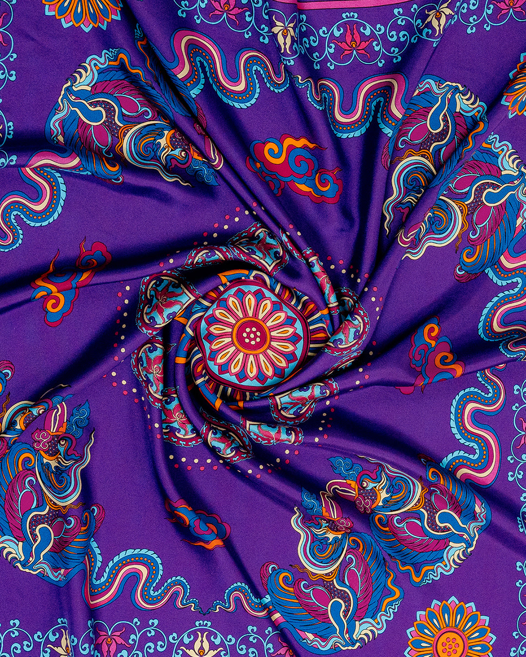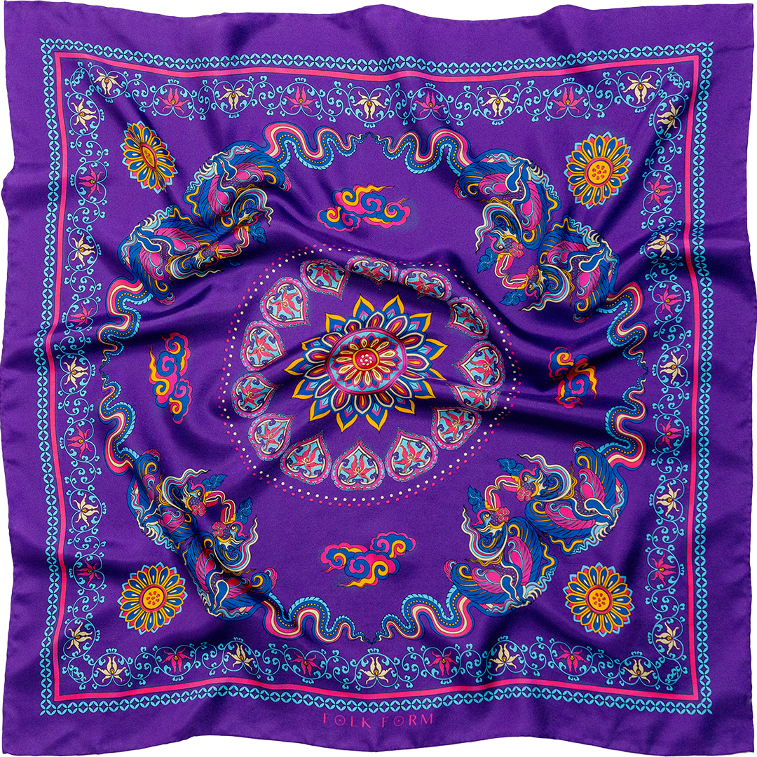Phoenix Dance Silk Scarf / Purple / 65x65cm / 26x26in