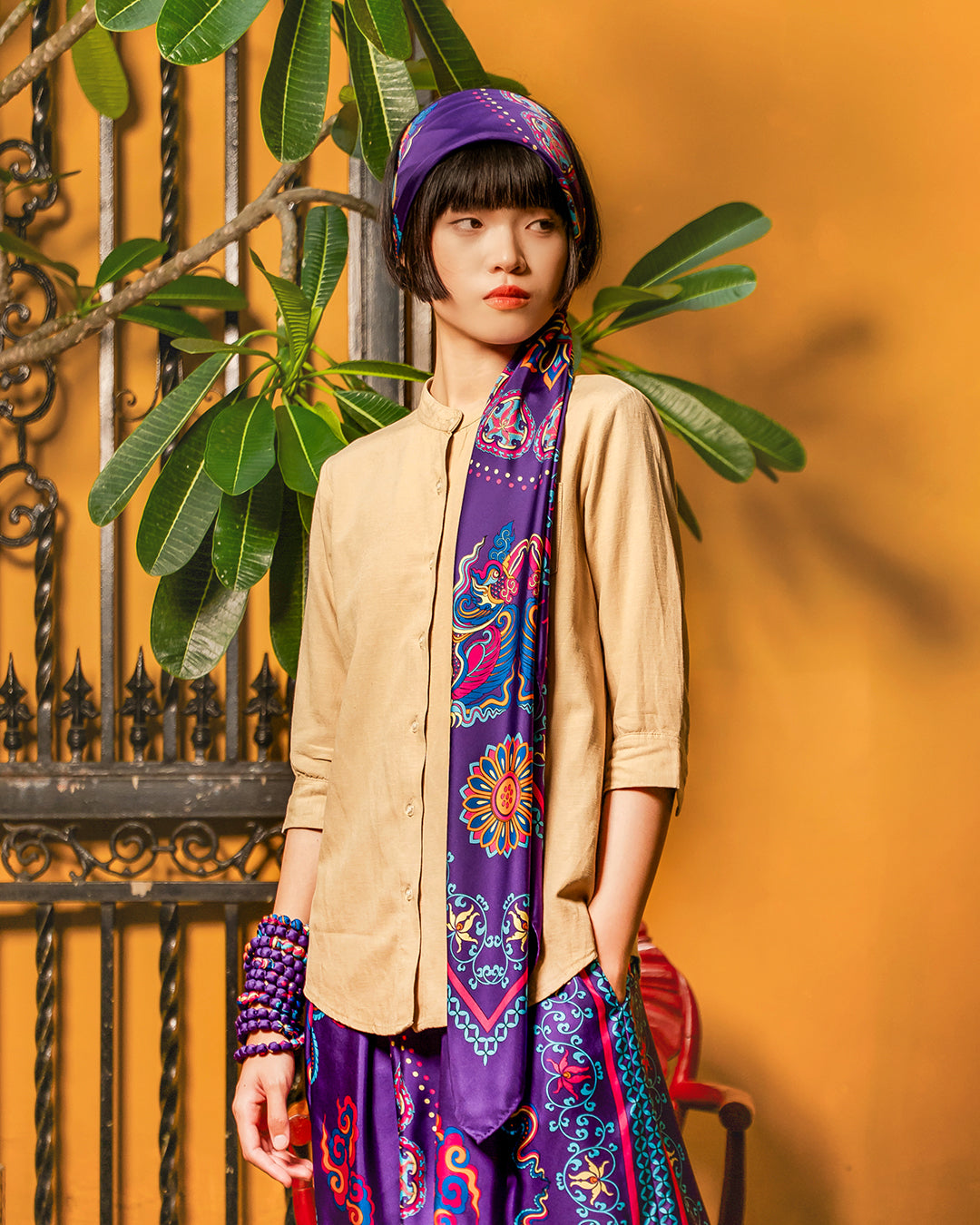Folk Form proudly presents the silk scarf featuring the "Phoenix Dance" print – a collection that reimagines the beauty of the Phoenix, a sacred creature symbolizing the Empress, femininity, nobility, and virtue in Đại Việt culture. Each silk thread weaves a thousand-year story, embodying the brand’s dedication, crafting a precious gem that represents an enduring heritage—where tradition and modern creativity intertwine, bringing forth a graceful, meaningful beauty.