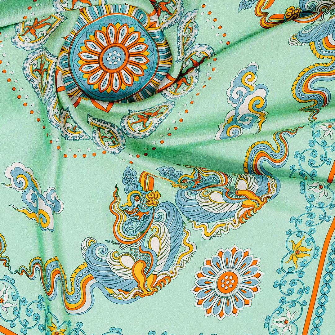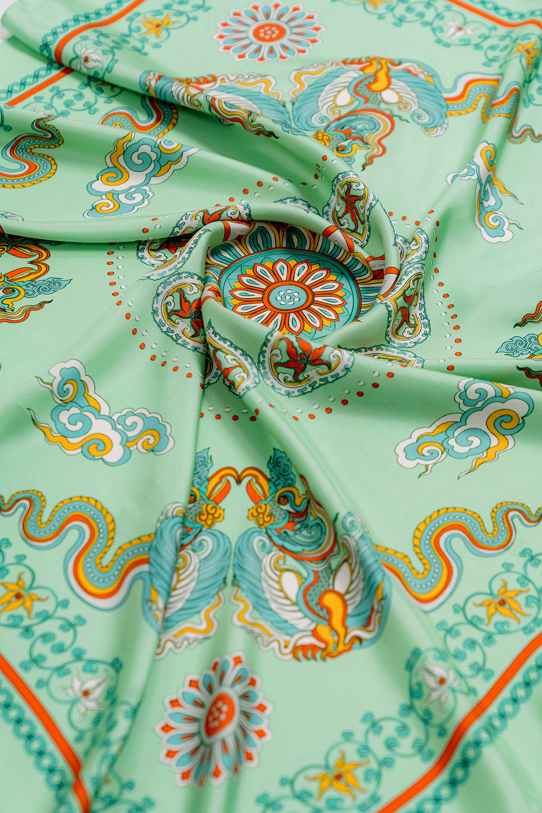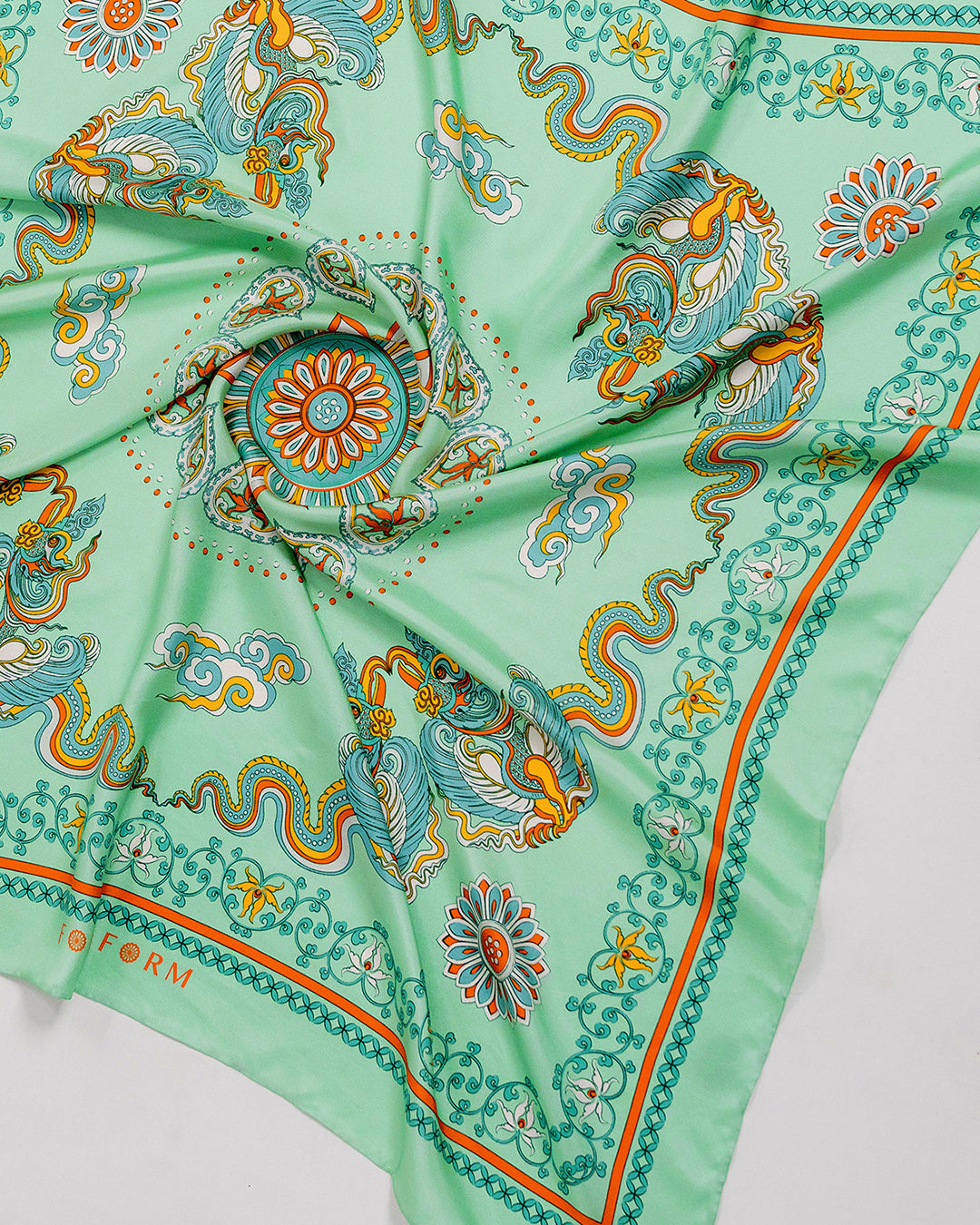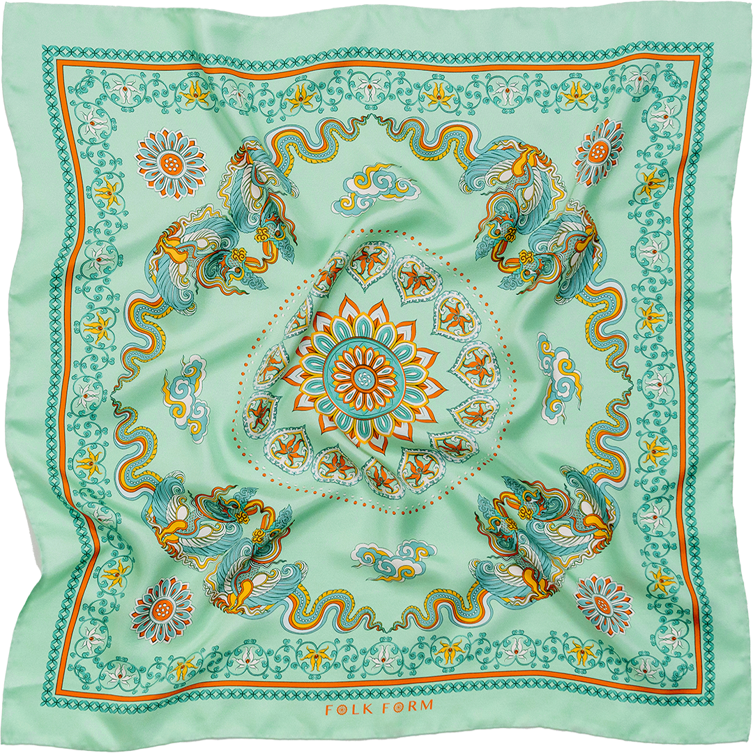 Phoenix Dance Silk Scarf / Green / 55x55cm / 22x22in