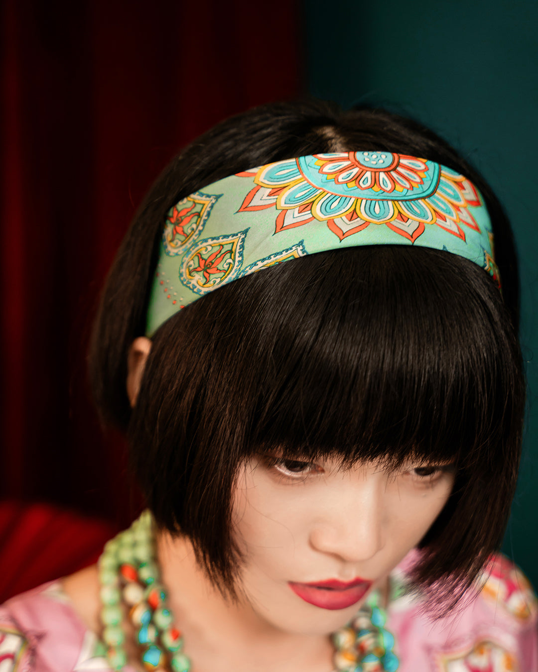 Folk Form's green silk scarf adds a touch of luxury and offers natural moisture retention, breathability, and gentle softness. Perfect for sensitive skin, it reduces friction, hair breakage, and frizz, enhancing shine. Style it any way you want in your own mood and creativity!