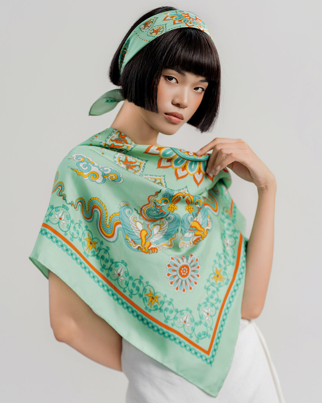Inspired by Vietnamese Royal Heritage (Asian culture), the "Phoenix Dance" Silk Scarf brings to life the legendary phoenix — a symbol of prosperity, harmony, and transformation.