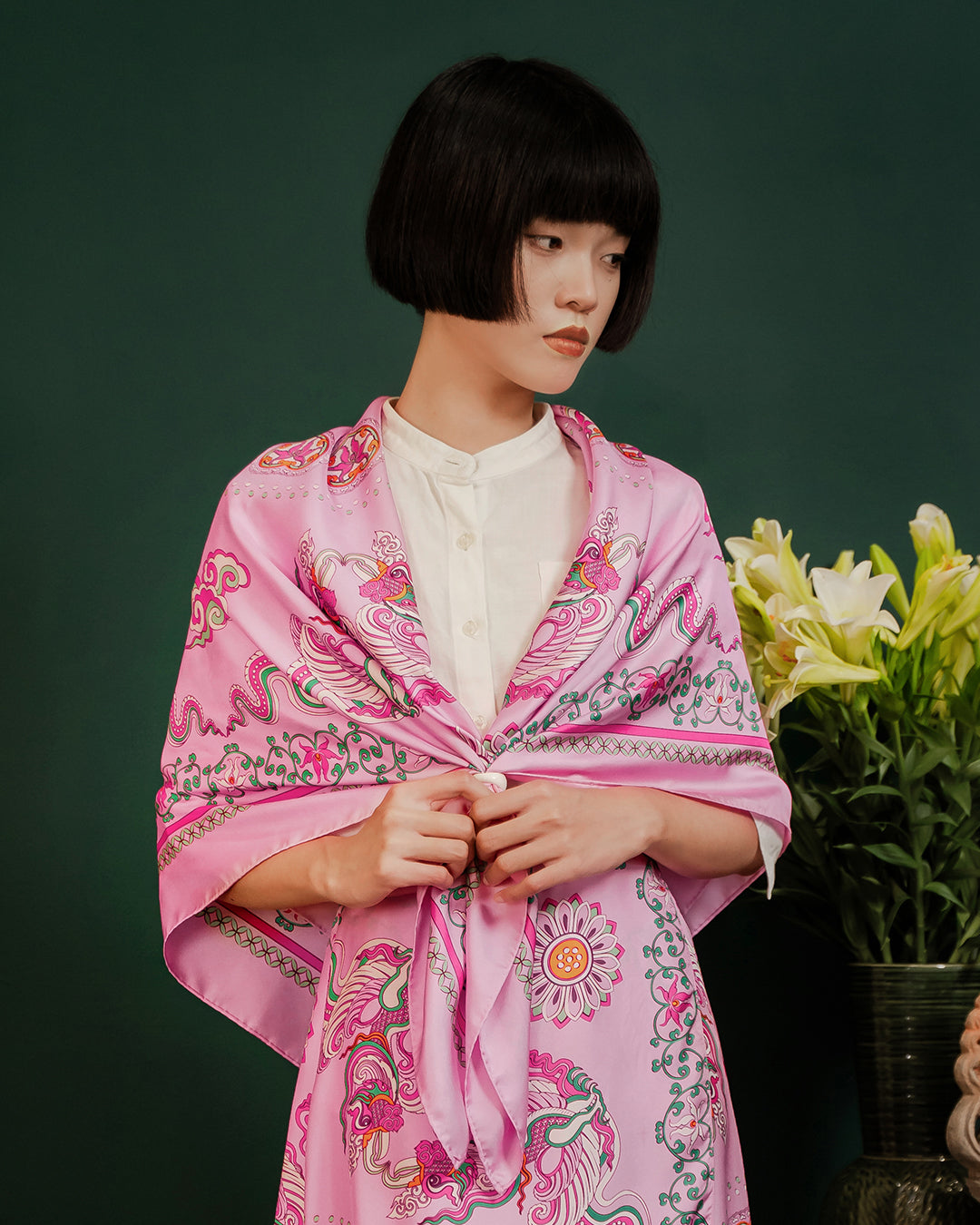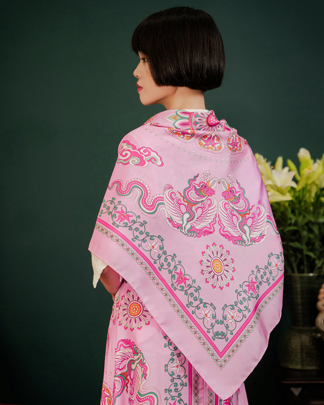 Inspired by Vietnamese Royal Heritage (Asian culture), the "Phoenix Dance" Silk Scarf brings to life the legendary phoenix — a symbol of prosperity, harmony, and transformation.