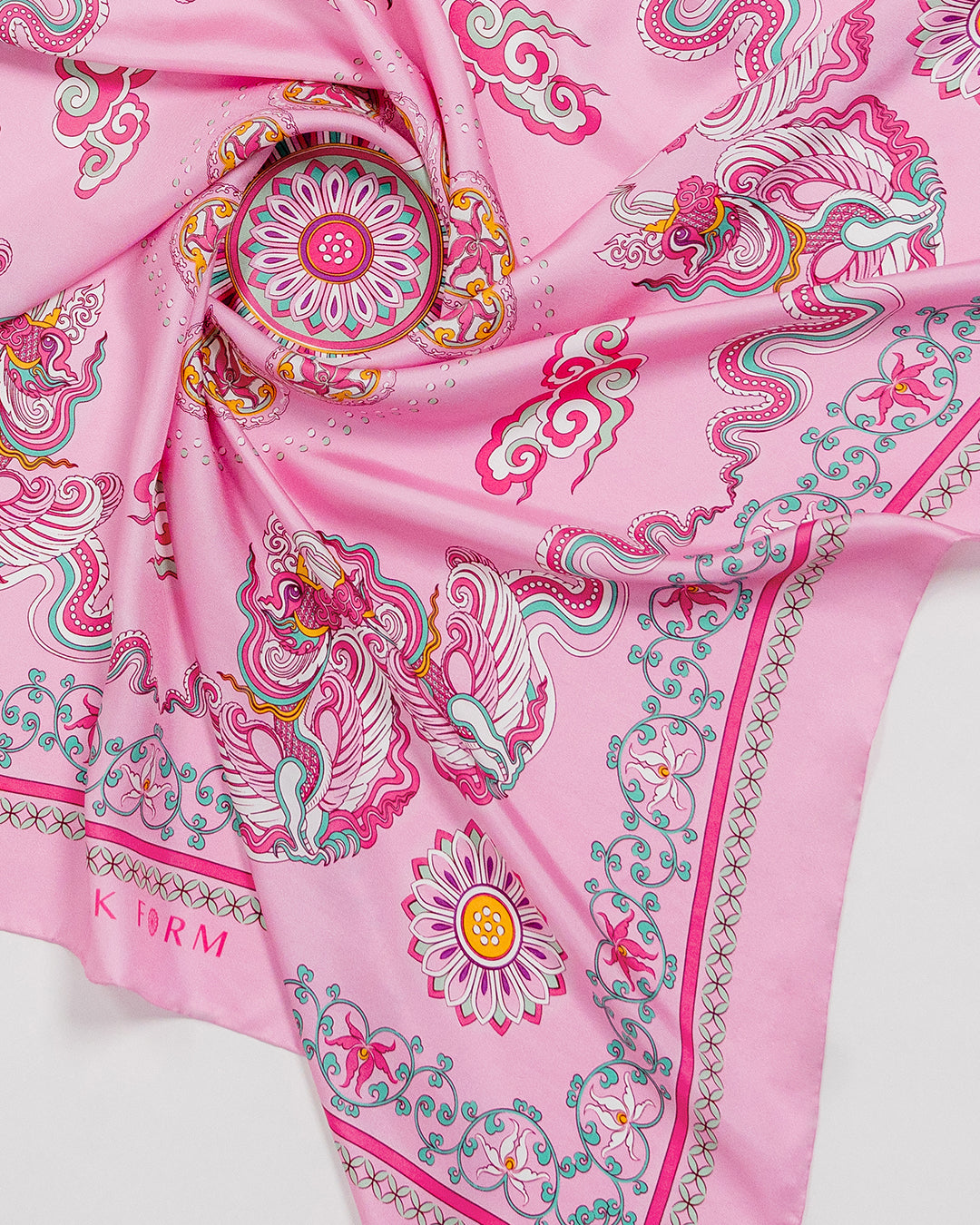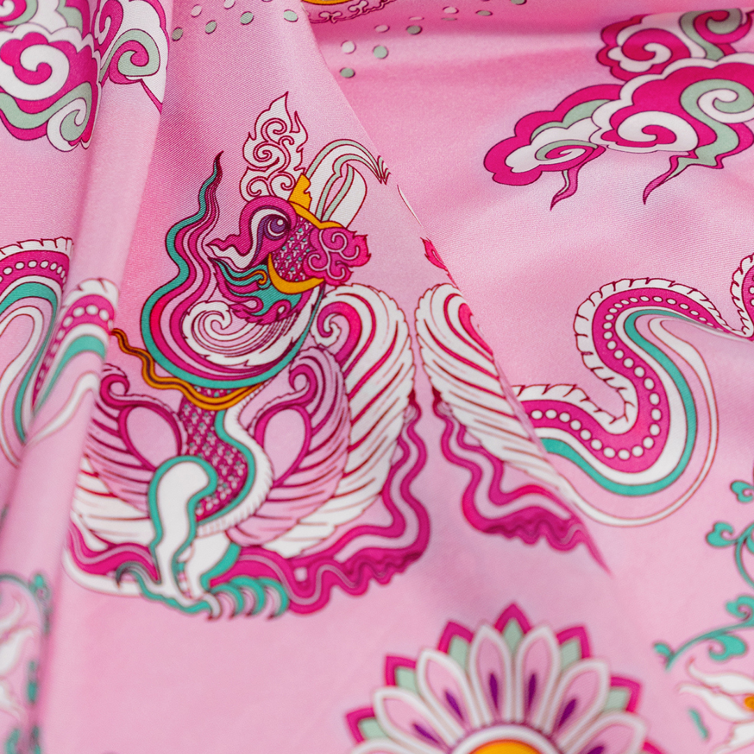 Phoenix Dance Silk Scarf / Pink / 110x110cm / 44x44in