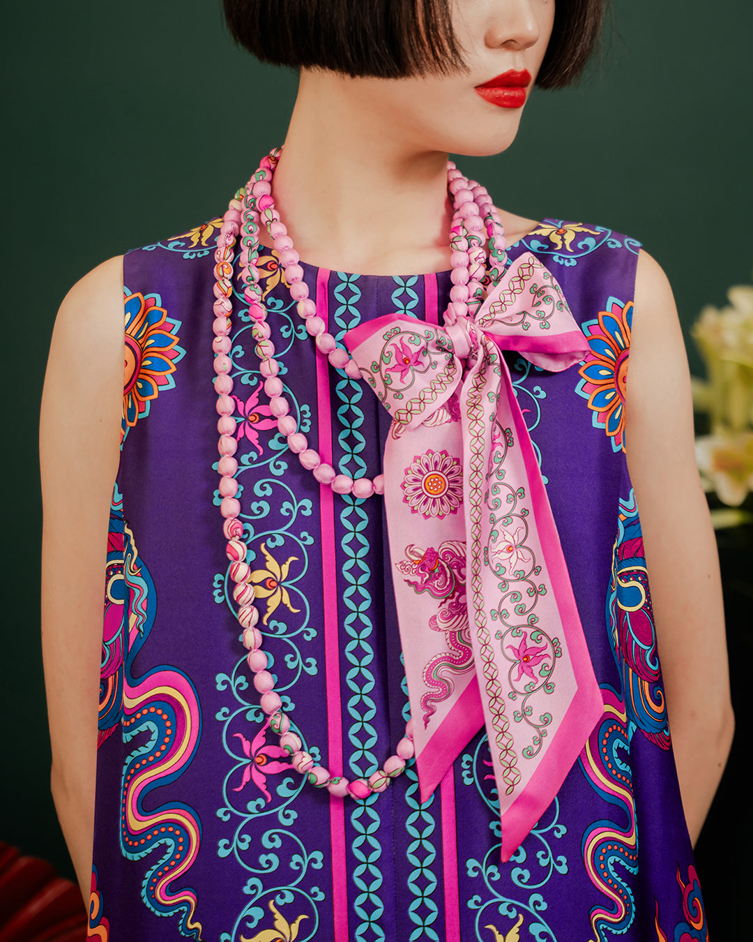 Folk Form Silk Scarf offers unparalleled comfort and timeless beauty, setting a new standard in craftsmanship and sophistication.