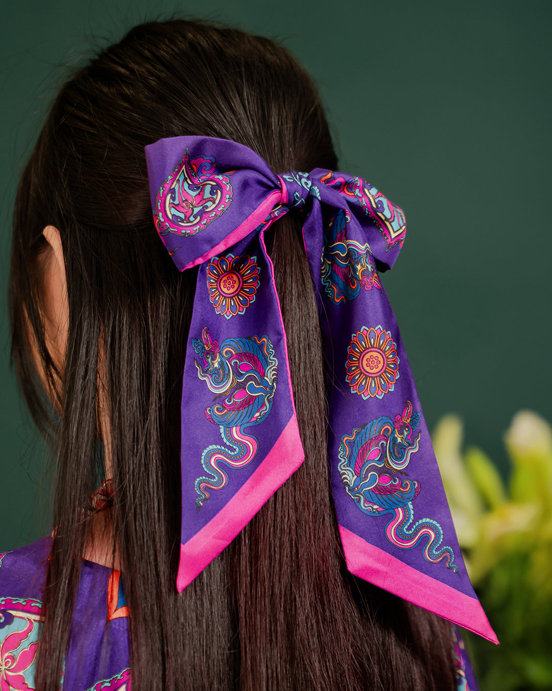 Thanks to its ideal length, the Twilly can become a chic bandeau headband, a graceful ribbon for a bun or ponytail, or a colorful highlight woven through a braid.